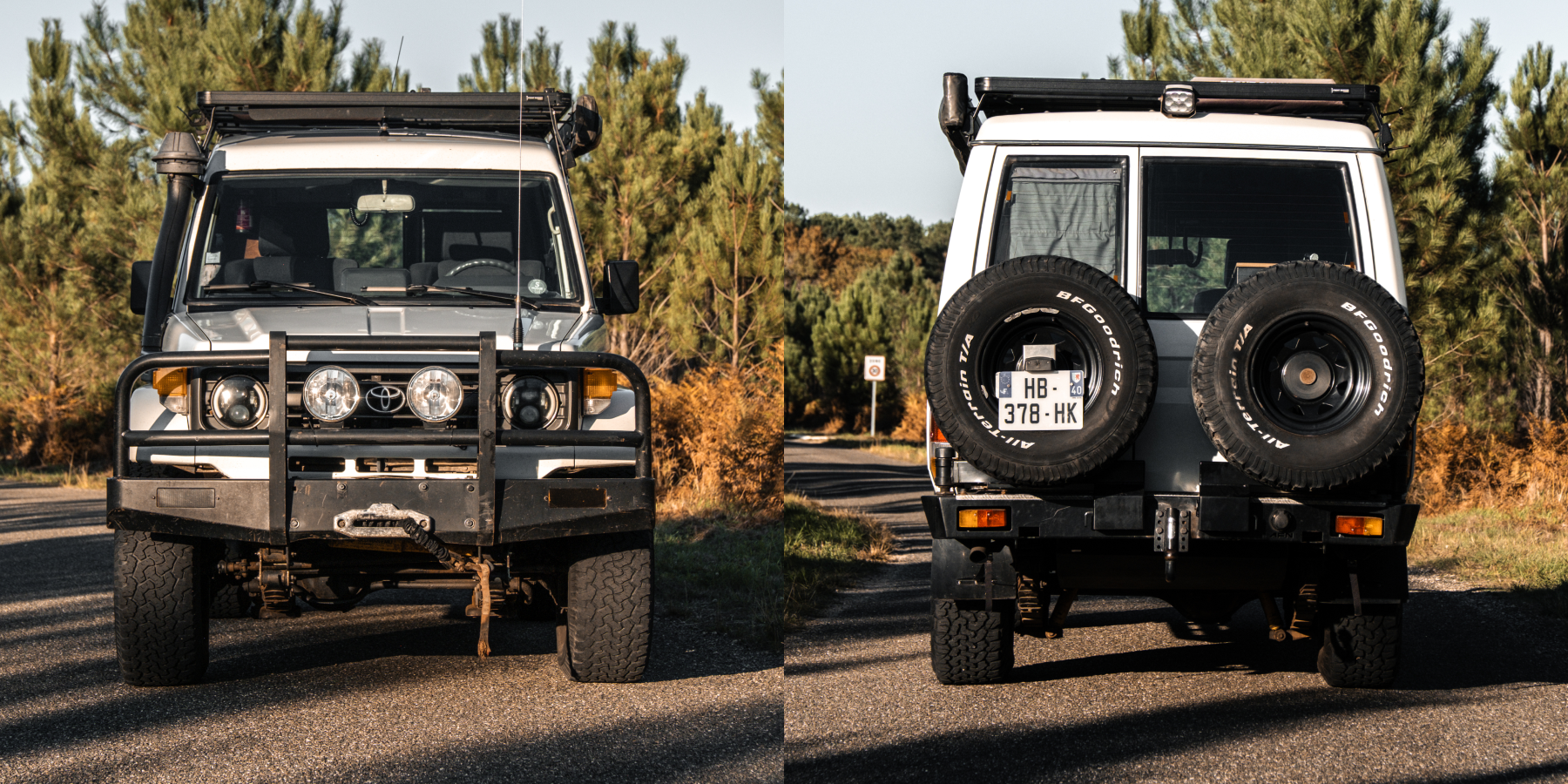 Grâce à une rénovation complète, une suspension renforcée, des protections adaptées et un aménagement intérieur pensé pour l’autonomie, ce Toyota Land Cruiser est aujourd’hui parfaitement préparé pour les voyages longue distance, l’overlanding et les pistes reculées.